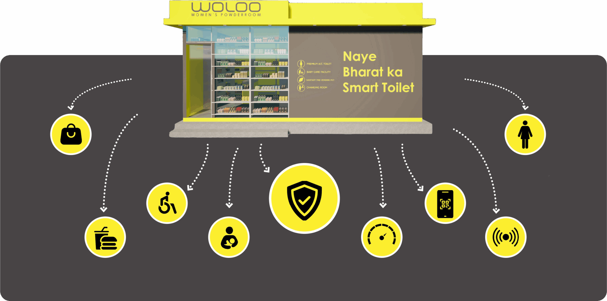 and retail space, equipped with smart toilets for women along with a store for women centric products/café, managed by women’s